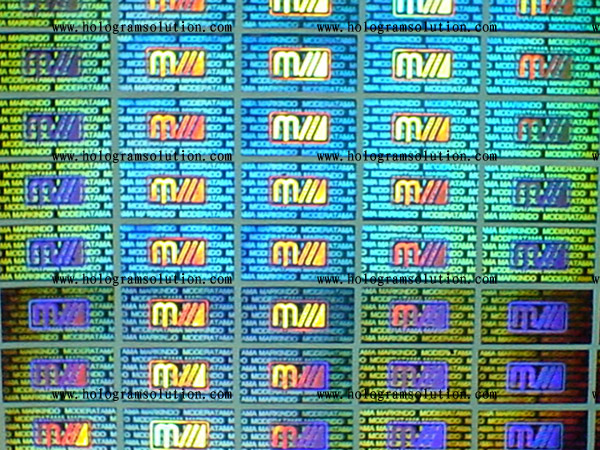 This Hologram Label is 2D/3D hologram effect, two layers with viewing depth, two color seperation. Each layer has one color. The small text is one color go around the background deeply.
