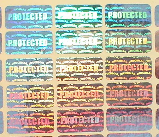 Protect your product from potential counterfeiters with this highly sophisticated security hologram. Material Tamper evident, temper-proof, High security 'VOID' , 'ORIGINAL', 'CANCELED', ' Comb' Pattern Released with Black Overprinting Serial Numbe, Eengraved Transparent Serial Numberupon removal preventing illegal use and nullifying any guarantees associated with holograms integrity. Benefit from this hologram on documents, collectibles, ID Cards, retail goods and other important assets.