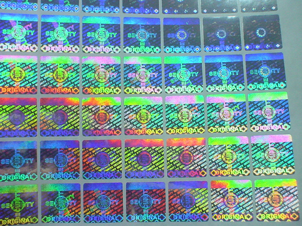 This sticker is general design 2D/3D hologram. There's floating layer 'SECURITY', 'GENUINE' in first layer which is 1 cm above the surface. Another layer is 'VALID', 'AUTHENTIC' which is 1 cm under the surface.