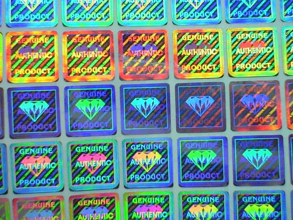 Protect your product from potential counterfeiters with this highly sophisticated security hologram. Material Tamper evident, temper-proof, High security 'VOID' , 'ORIGINAL', 'CANCELED', ' Comb' Pattern Released with Black Overprinting Serial Numbe, Eengraved Transparent Serial Numberupon removal preventing illegal use and nullifying any guarantees associated with holograms integrity. Benefit from this hologram on documents, collectibles, ID Cards, retail goods and other important assets.